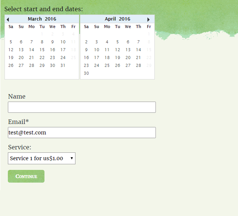 Template in different tones of green, mainly used in the background in the form, which also includes an ornamented top, informative texts, and buttons.